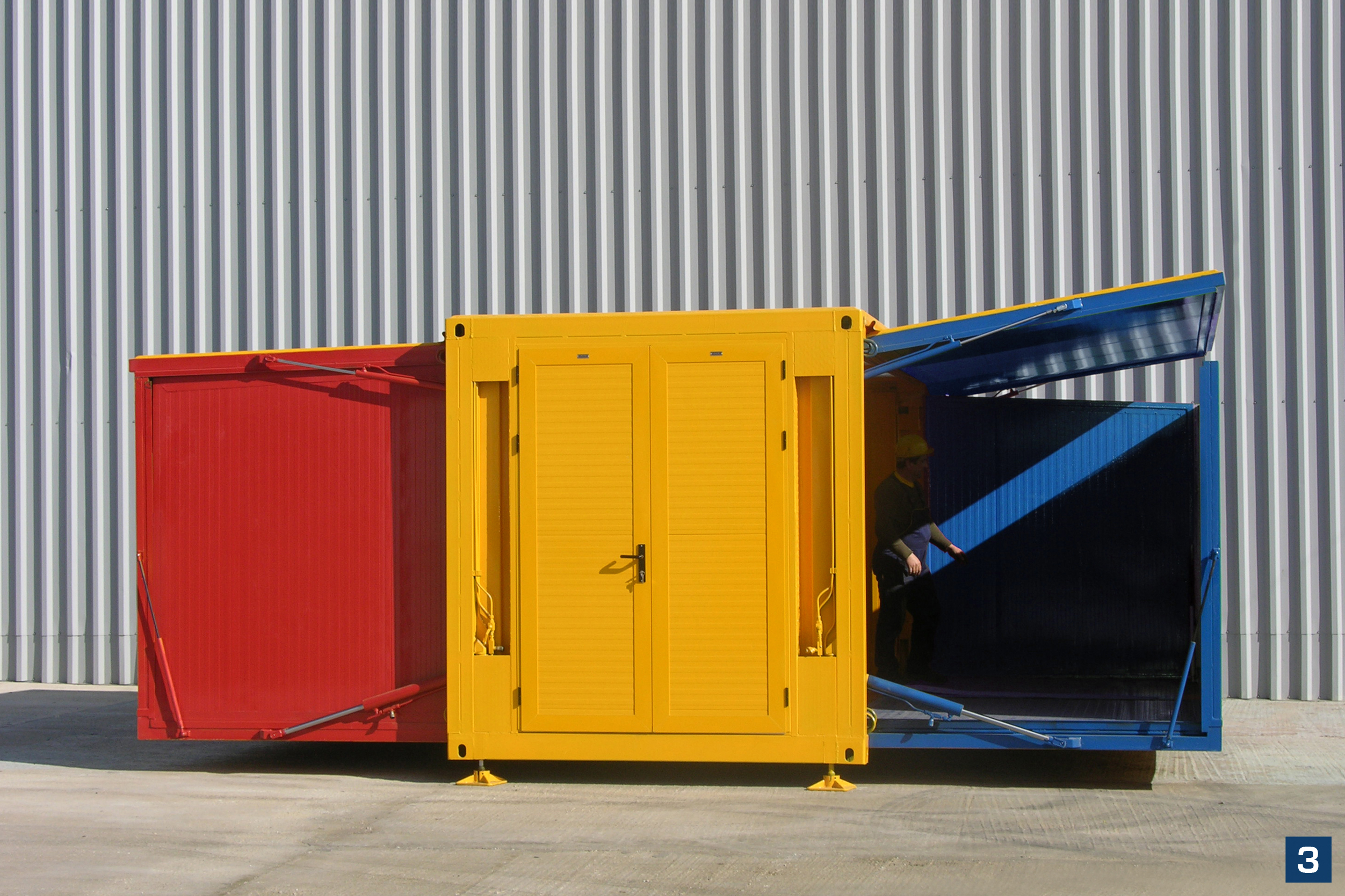 Το 3IN1-MODULBOX είναι μια ευέλικτη, πολυμορφική, μεταφερόμενη κατασκευή, που τριπλασιάζει τον ωφέλιμο χώρο της, μέσα από μια διαδικασία «επάλληλου ξεδιπλώματος». Αναπτύσσεται σε 4 μόνο λεπτά, με υδραυλικό μηχανισμό και σφραγίζει πλήρως. Ανάλογα με τις απαιτήσεις της κάθε χρήσης, μπορεί να εξασφαλιστεί ενεργειακή αυτονομία.
