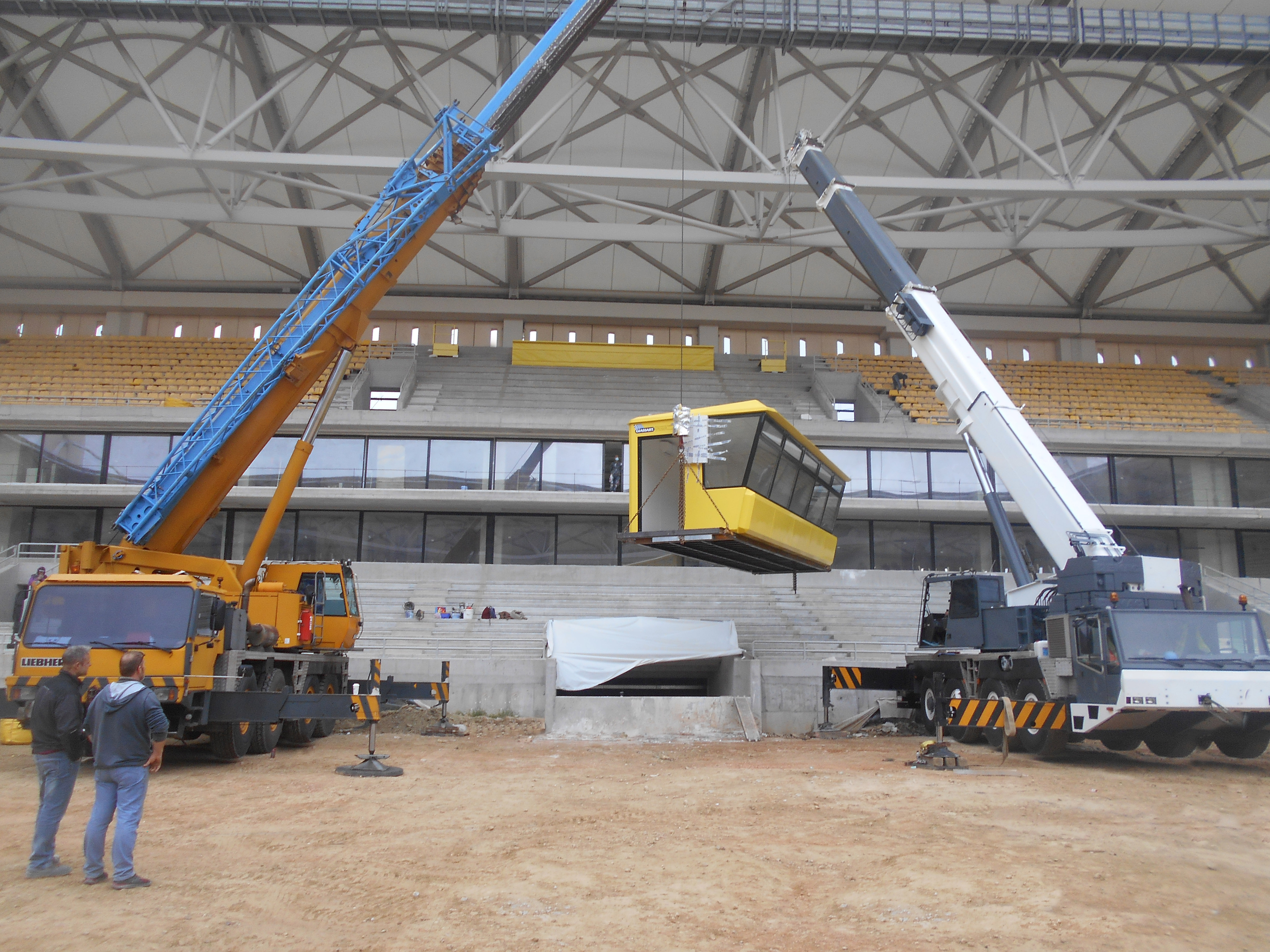 GLASSART constructed and installed press boxes-booths at the new stadiums of AEK. A steel booth for television and journalistic coverage of FERRON series was installed at the new stadium of AEK training center, while at the stadium in Nea Filadelfia a polyester booth (GRP) of the THEA series was installed.